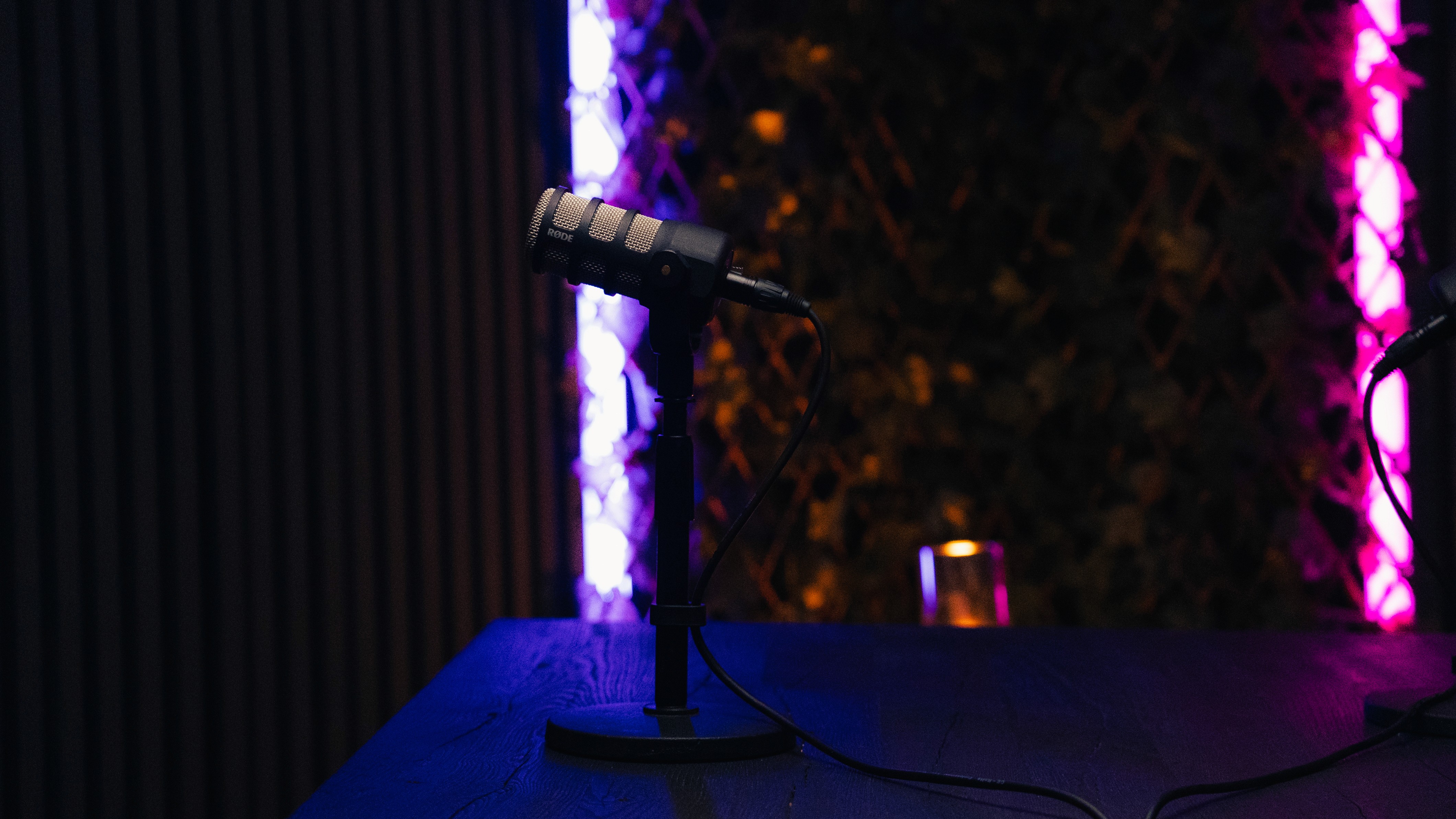 „Professionelles Podcast-Studio mit hochwertigem Ton und Atmosphäre.“
